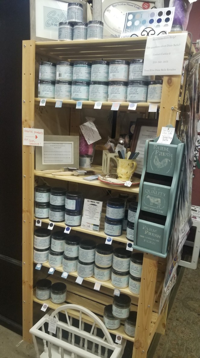I am proud to be an Elite retailer for Dixie Belle chalk and mineral paint! We offer 64 gorgeous colors to paint up any item needing a make over. (see a sampling in slide show)Feel free to shop with me locally in my Shades Of Yesterday shop. As an Elite retailer I carry all things Dixie Belle for your diy needs!