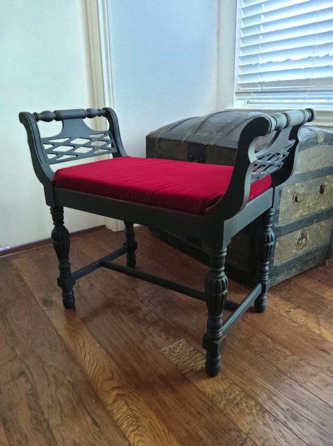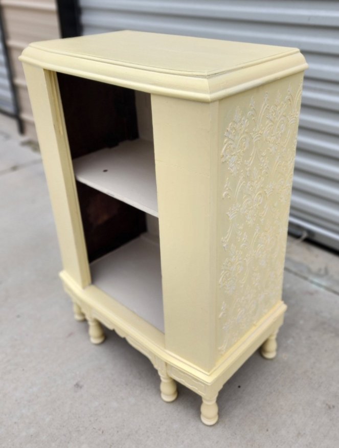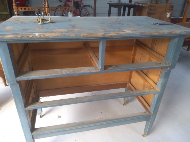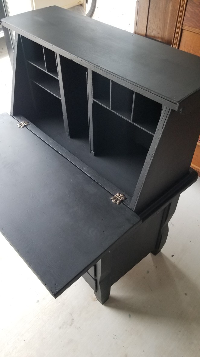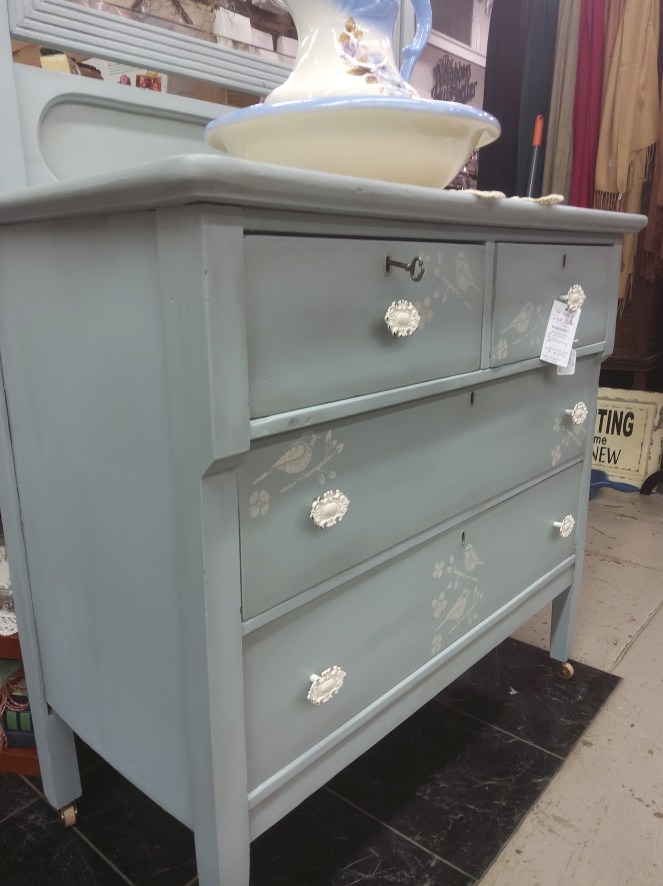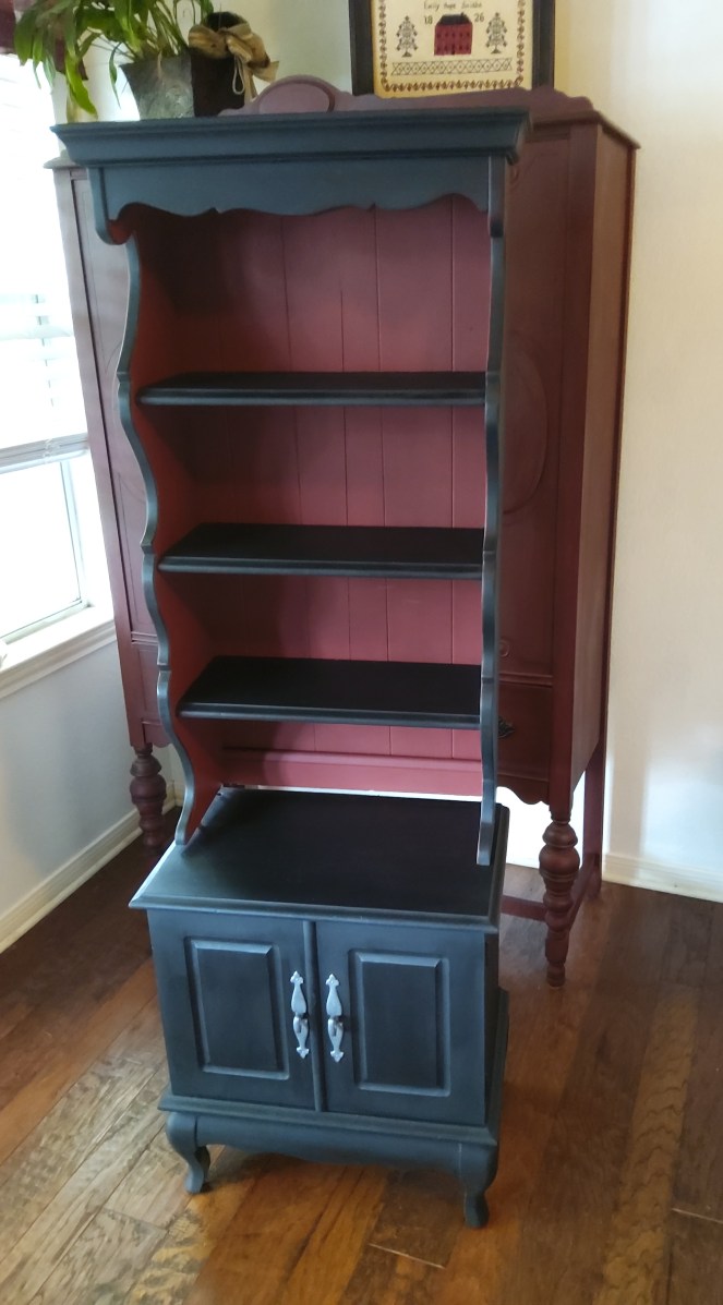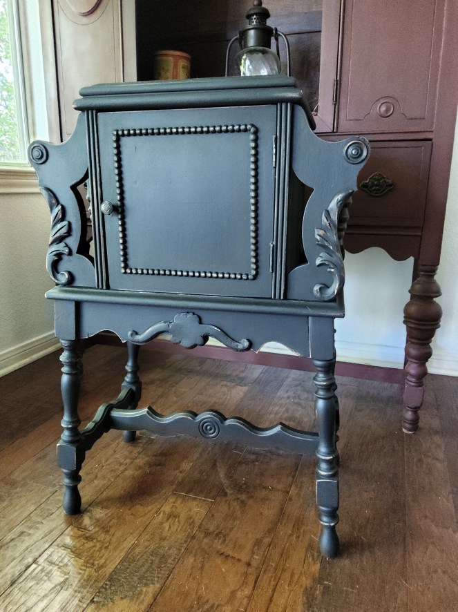 This antique sewing cabinet is a personal piece I just refinished in Dixie Belles “Antebellum Blue ” with black wax accentsCustomers own piece refinished in Caviar black and clear wax