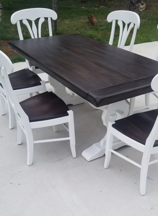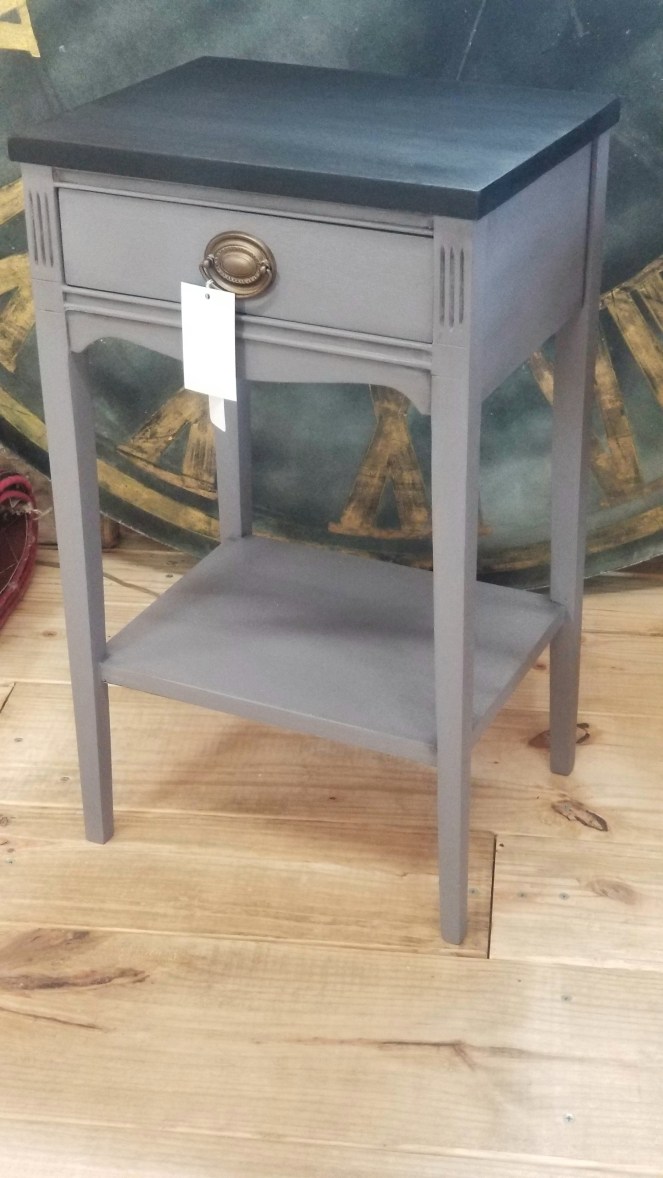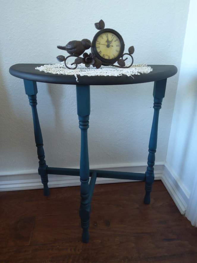 Adorable antique half table in Antebellum Blue and Caviar. These colors have been a strong customer favorite.